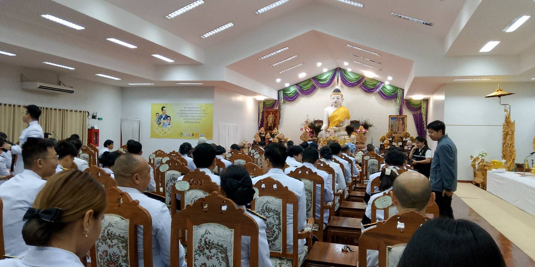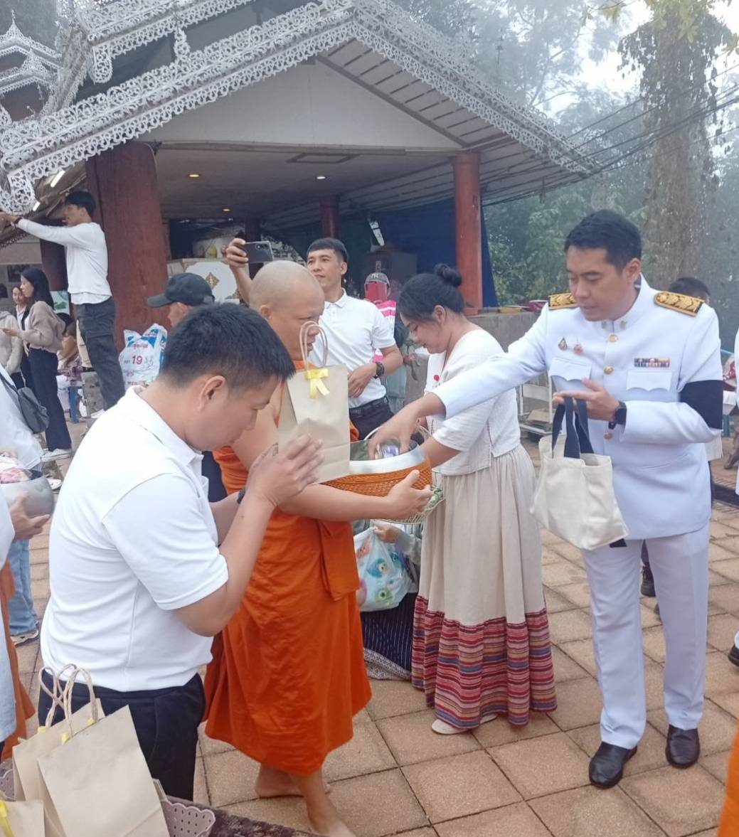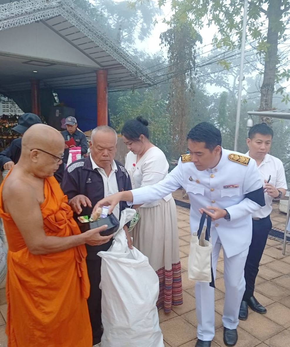 วันศุกร์ที่ 5 ธันวาคม 2568 เวลา 07.00 น. นางสาวกาญจนา ทัพป้อม อุตสาหกรรมจังหวัดแม่ฮ่องสอน มอบหมายให้ นายพงพนธ์ ออมแก้ว หัวหน้ากลุ่มโรงงานอุตสาหกรรม ร่วมพิธีเจริญพระพุทธมนต์และทำบุญตักบาตรถวายพระราชกุศล เนื่องในวันคล้ายวันพระบรมราชสมภพพระบาทสมเด็จพระบรมชนกาธิเบศร มหาภูมิพลอดุลยเดชมหาราช บรมนาถบพิตร วันชาติ และวันพ่อแห่งชาติ 5 ธันวาคม 2568 ณ วัดพระธาตุดอยกองมู ตำบลจองคำ อำเภอเมืองแม่ฮ่องสอน จังหวัดแม่ฮ่องสอน