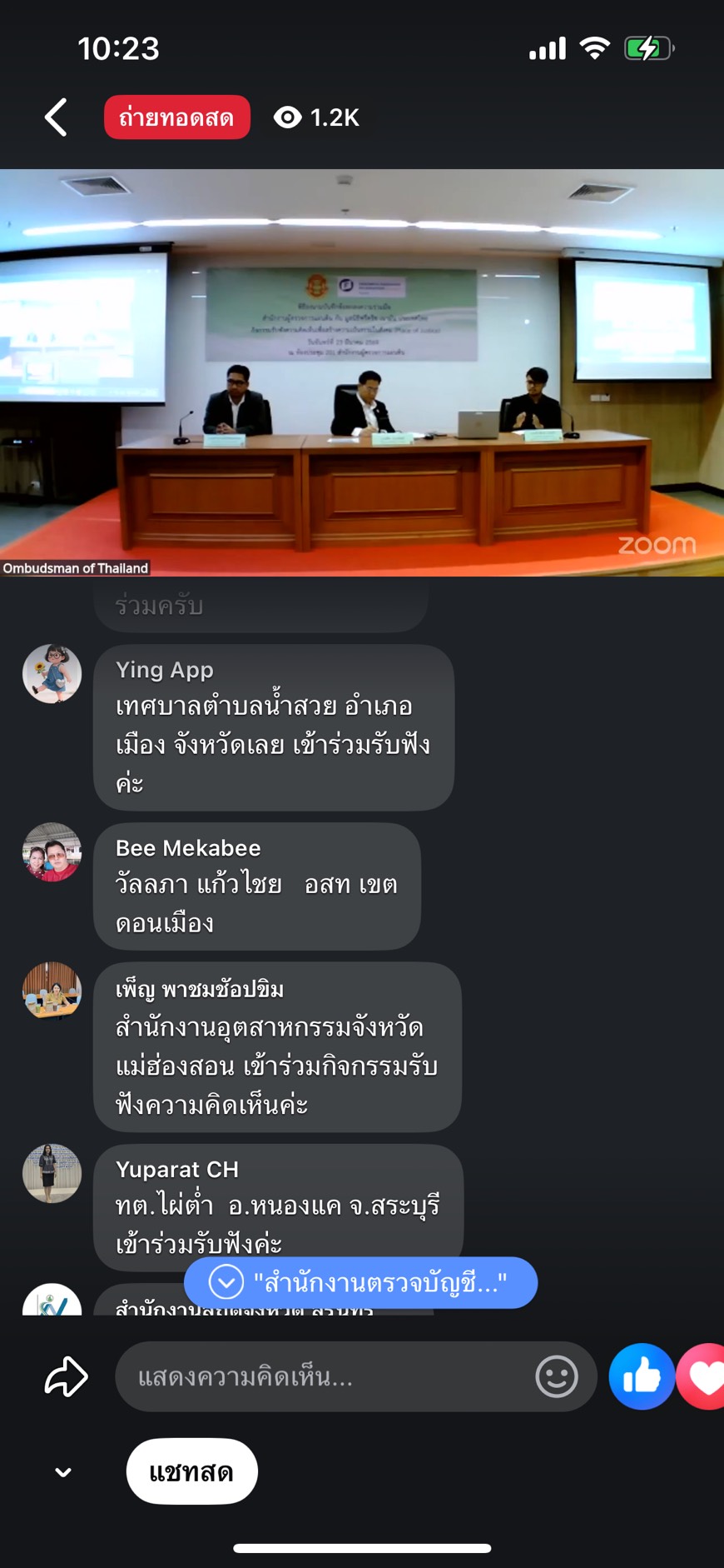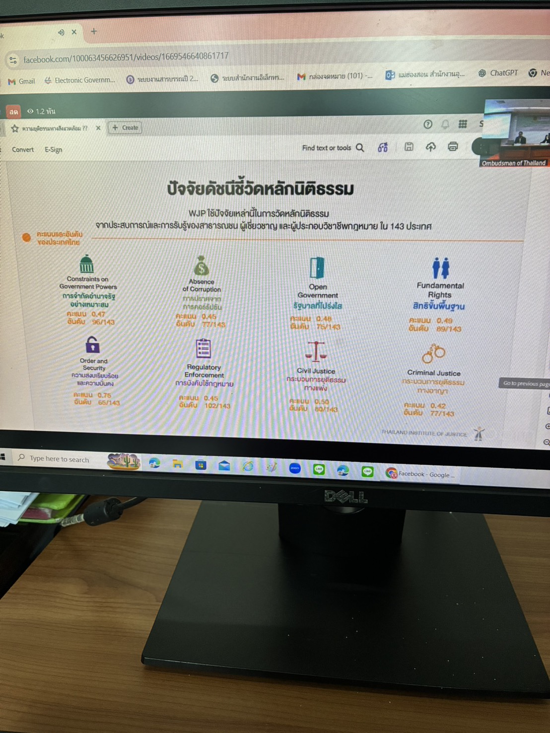 วันที่ 23 มีนาคม 2569 เวลา 09.00 – 12.00 น. นางสาวกาญจนา ทัพป้อม อุตสาหกรรมจังหวัดแม่ฮ่องสอน มอบหมายให้ นางสาวชญาภา สยามเรืองรอง หัวหน้ากลุ่มนโยบายและแผนงาน เข้าร่วมกิจกรรมรับฟังความคิดเห็นเพื่อสร้างความเป็นธรรมในสังคม (Place of Justice) ซึ่งจัดขึ้นภายใต้ความร่วมมือระหว่าง สำนักงานผู้ตรวจการแผ่นดิน และ มูลนิธิฟรีดริช เนามัน ประเทศไทย ผ่านระบบออนไลน์