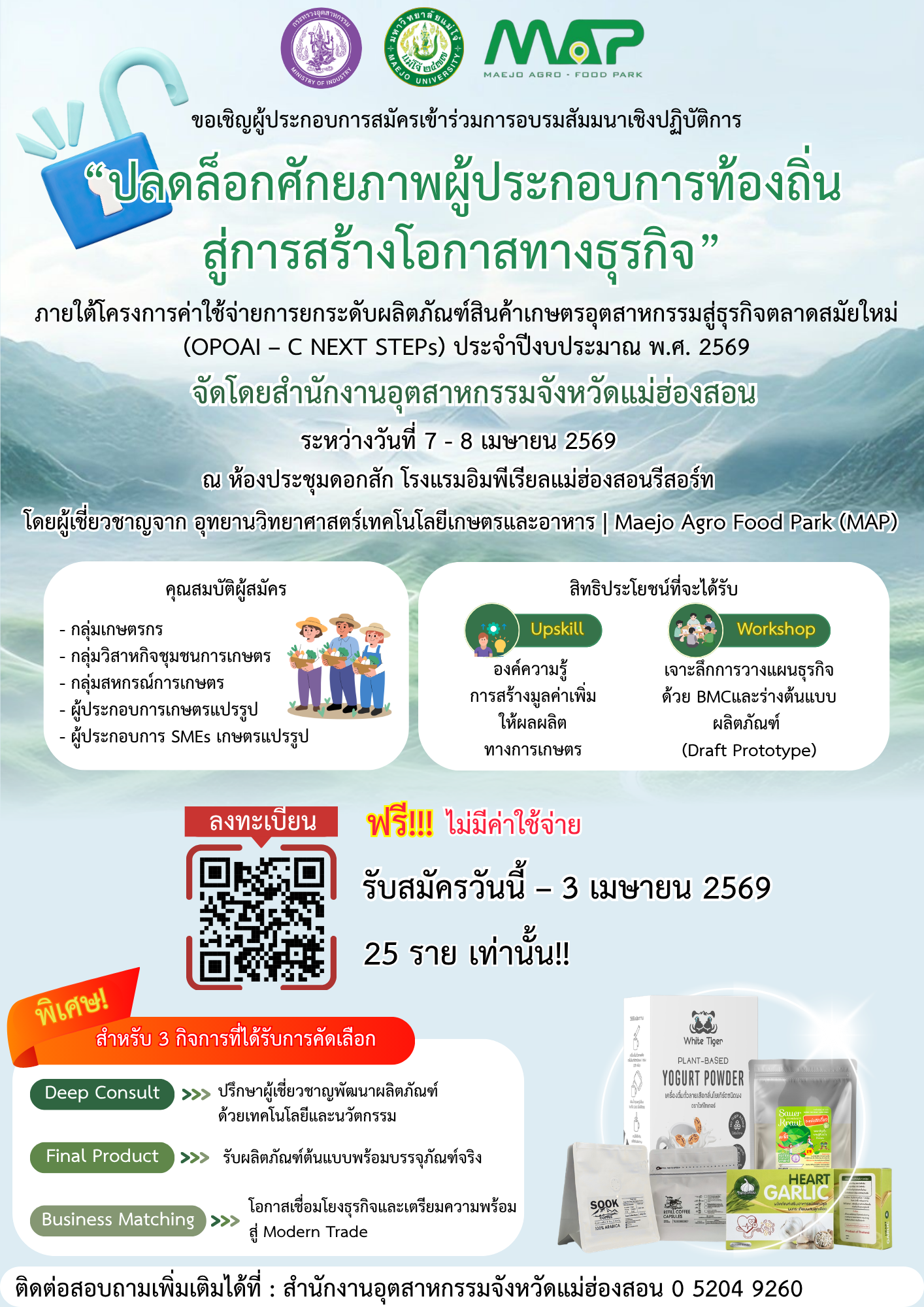 ภายใต้โครงการค่าใช้จ่ายการยกระดับผลิตภัณฑ์สินค้าเกษตรอุตสาหกรรมสู่ธุรกิจตลาดสมัยใหม่ (OPOAI – C NEXT STEPs) ประจำปีงบประมาณ พ.ศ. 2569