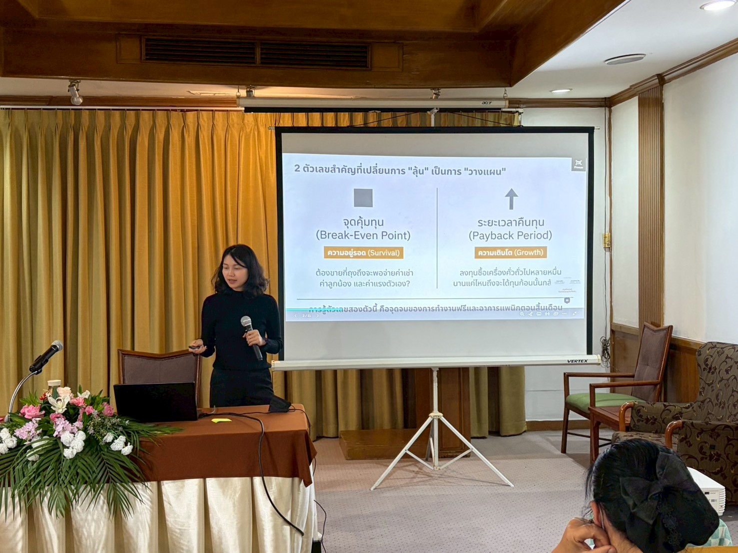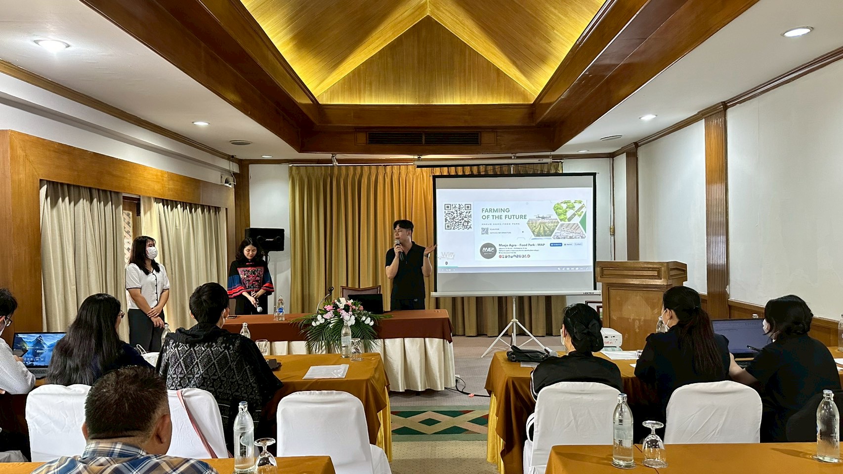 การอบรมมีวัตถุประสงค์เพื่อสร้างเสริมองค์ความรู้การพัฒนาผลิตภัณฑ์สินค้าเกษตรแปรรูปด้วยเทคโนโลยีหรือนวัตกรรมที่สร้างมูลค่าเพิ่มให้กับผลิตผลทางการเกษตรและพัฒนายกระดับศักยภาพผู้ประกอบการให้มีความพร้อมในการประกอบธุรกิจ กิจกรรมประกอบด้วยการบรรยายให้ความรู้ควบคู่กับการฝึกปฏิบัติ (Workshop) ในหัวข้อแนวทางการเพิ่มมูลค่าผลิตภัณฑ์ทางการเกษตรด้วยนวัตกรรมและวิทยาศาสตร์ Design Thinking การสร้างสรรค์พัฒนาต้นแบบผลิตภัณฑ์ ด้วยเครื่องมือ Ai การยกระดับมาตรฐานสินค้าและการเข้าถึงกลุ่มลูกค้าเป้าหมายในยุคดิจิทัล การบริหารธุรกิจสู่ตลาดค้าปลีกสมัยใหม่ (Modern Trade) กำหนดทิศทางธุรกิจด้วย Business Model Canvas (BMC)